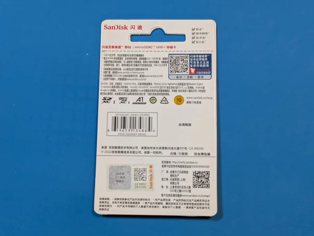 パット見通常のSanDiskのmicroSDカードと同様です。シリアル番号の記載もあります。