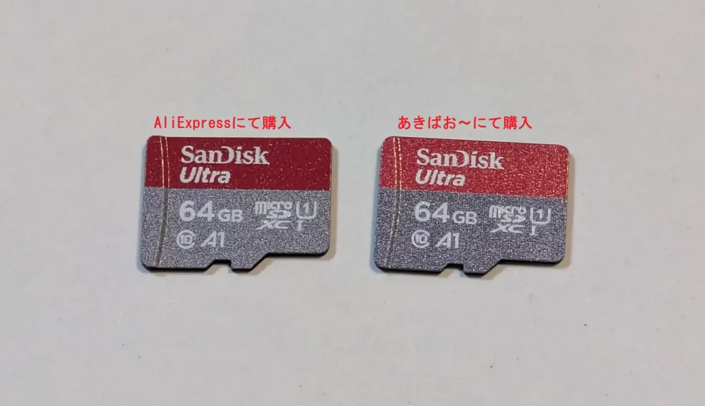 あきばお~で購入したmicroSDカードのと比較を行いました。