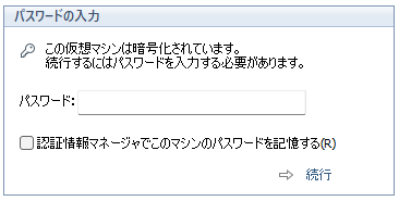 通常、このパスワードは仮想マシン作成時に自動入力され、さらに「認証情報マネージャでこのマシンのパスワードを記憶する(R)」にもチェックが入っているため、ユーザーが覚えておく必要はありません。