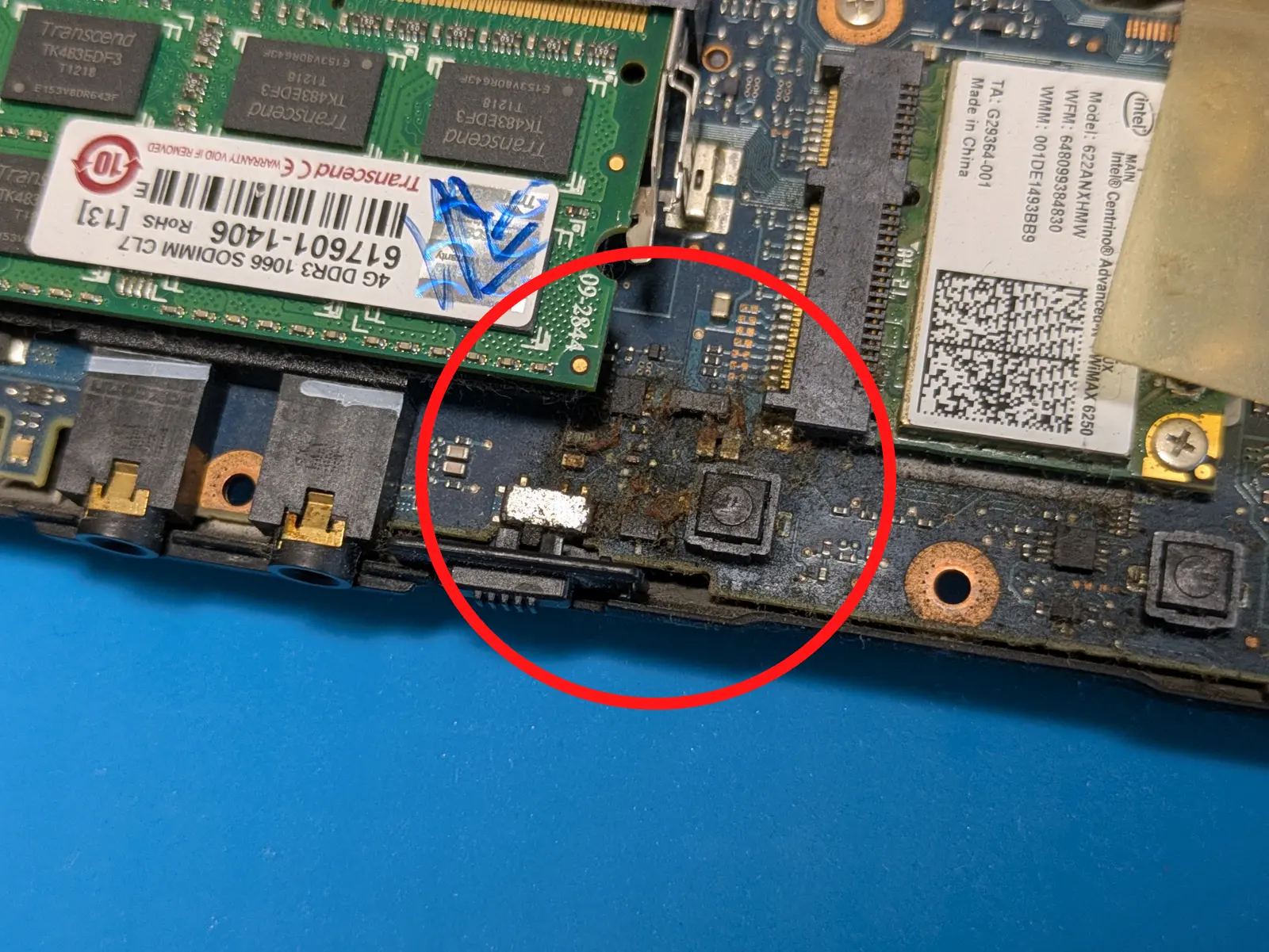 分解し無線LANスイッチの個所を確認すると、油を差したような跡がありました。