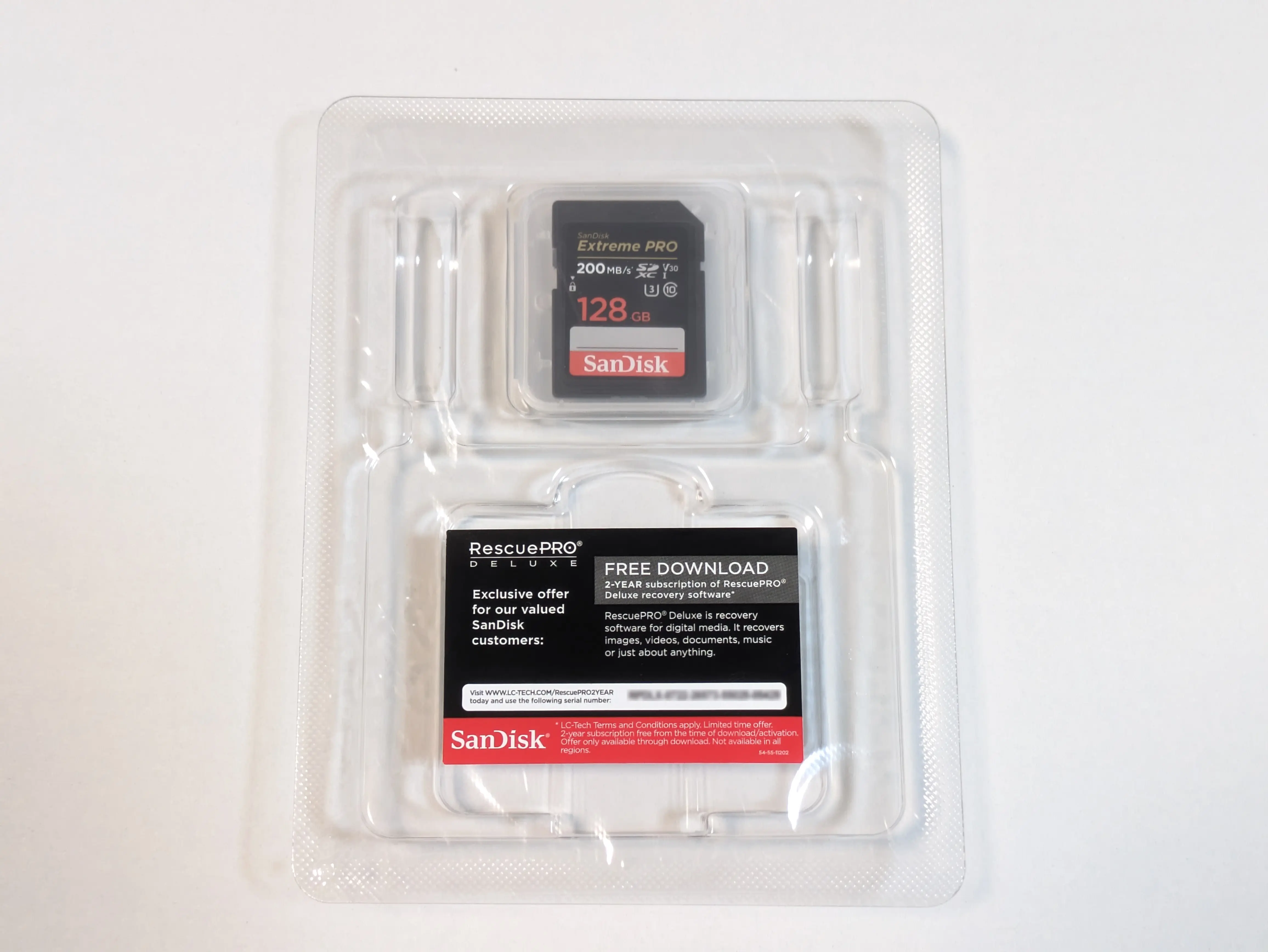 付属品は「SDカード本体」「SDカード用のプラスチックケース」「RescuePRO 2年ライセンス」が含まれていました。