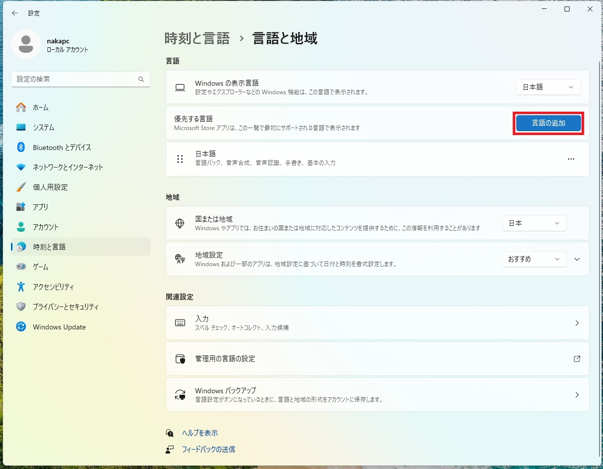 「Windows 11」言語を日本語から英語に変更する