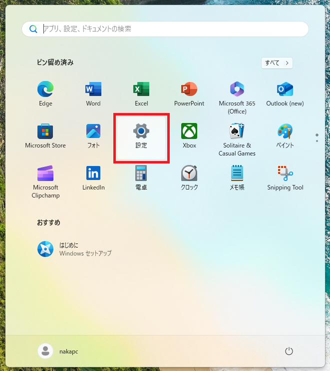 ①「設定」アプリを開きます。