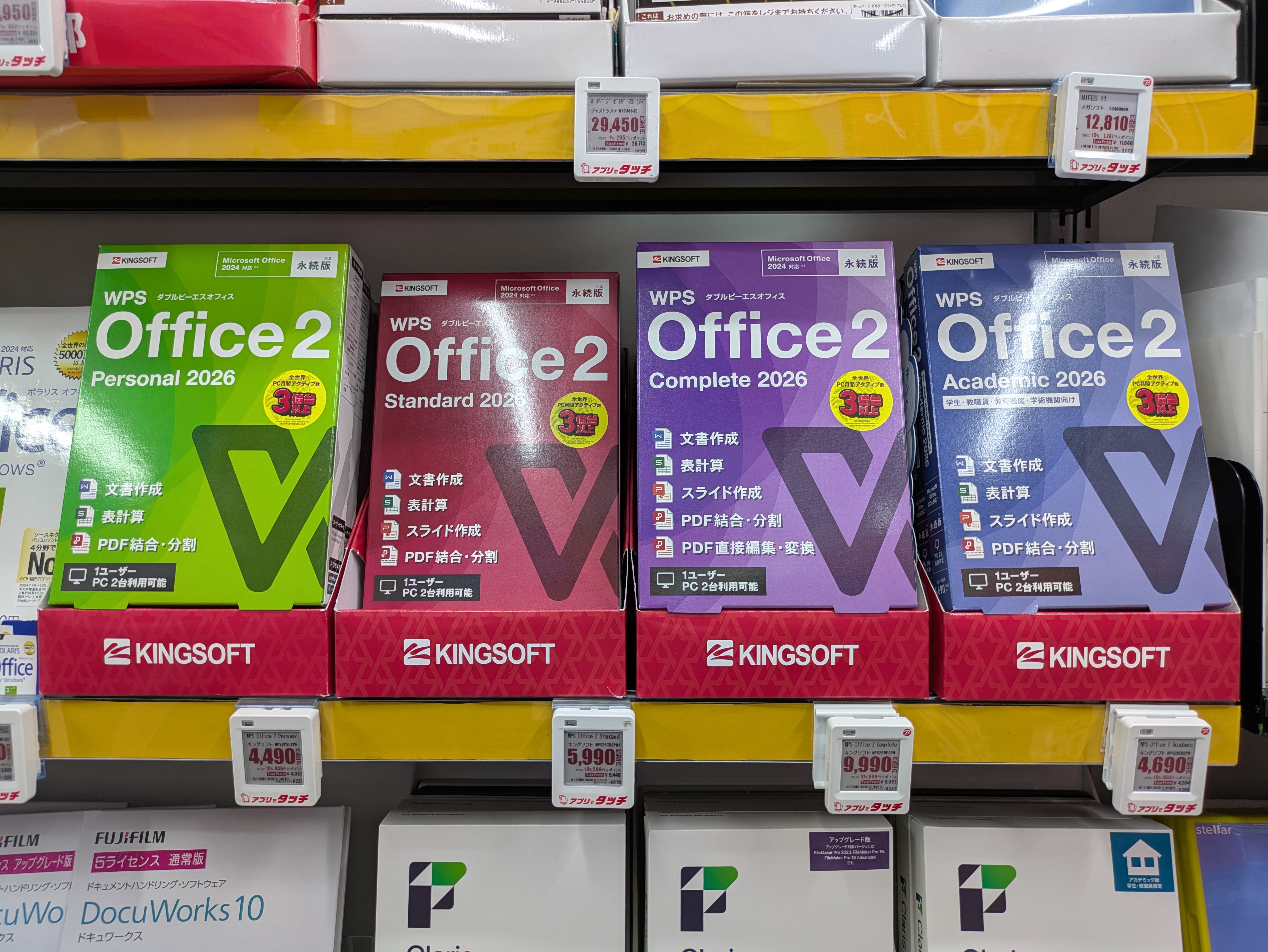 ビックカメラ有楽町店に足を運んだ際、WPS Office 2 2026 となるソフトウェアを見つけました。